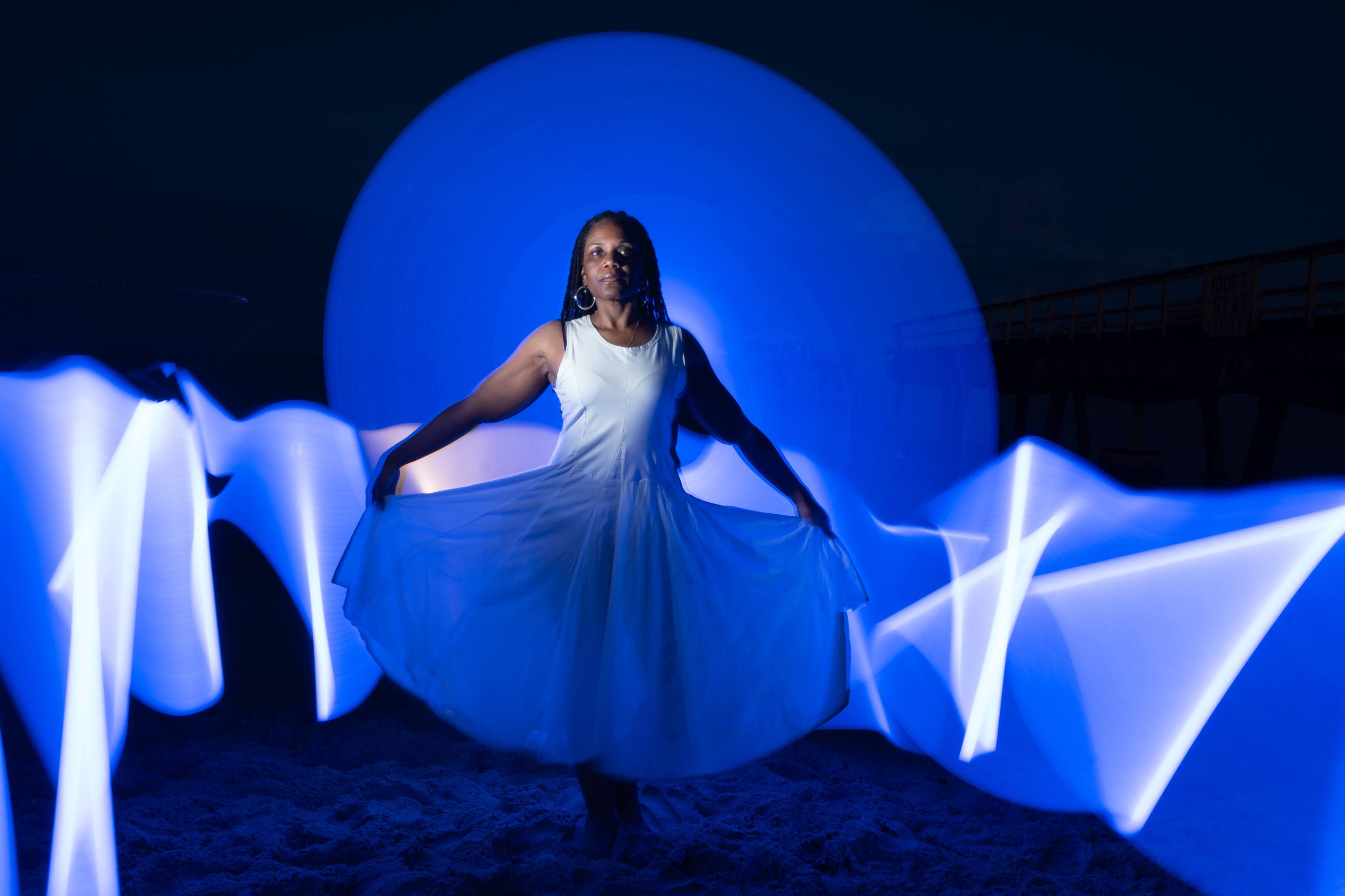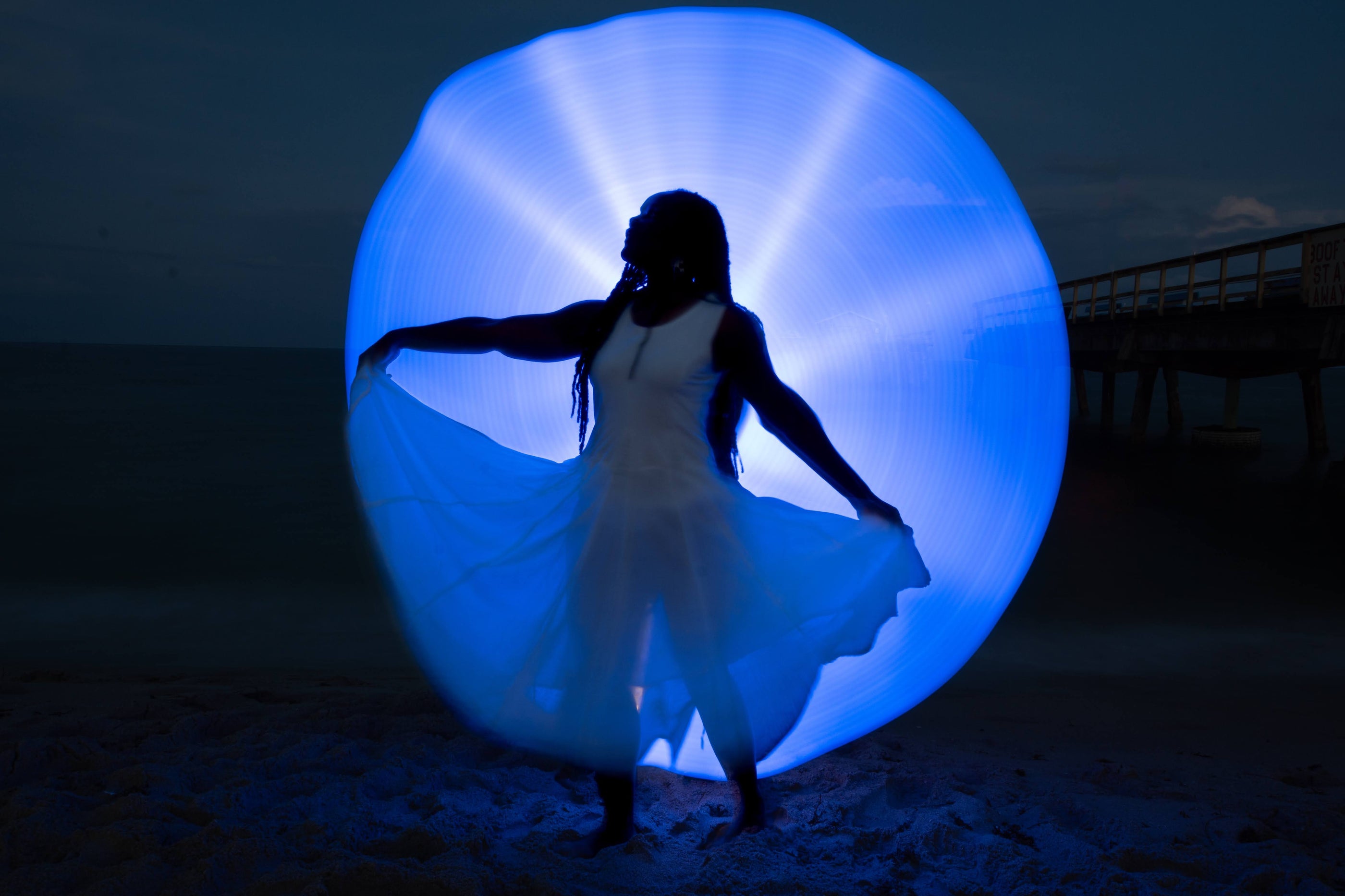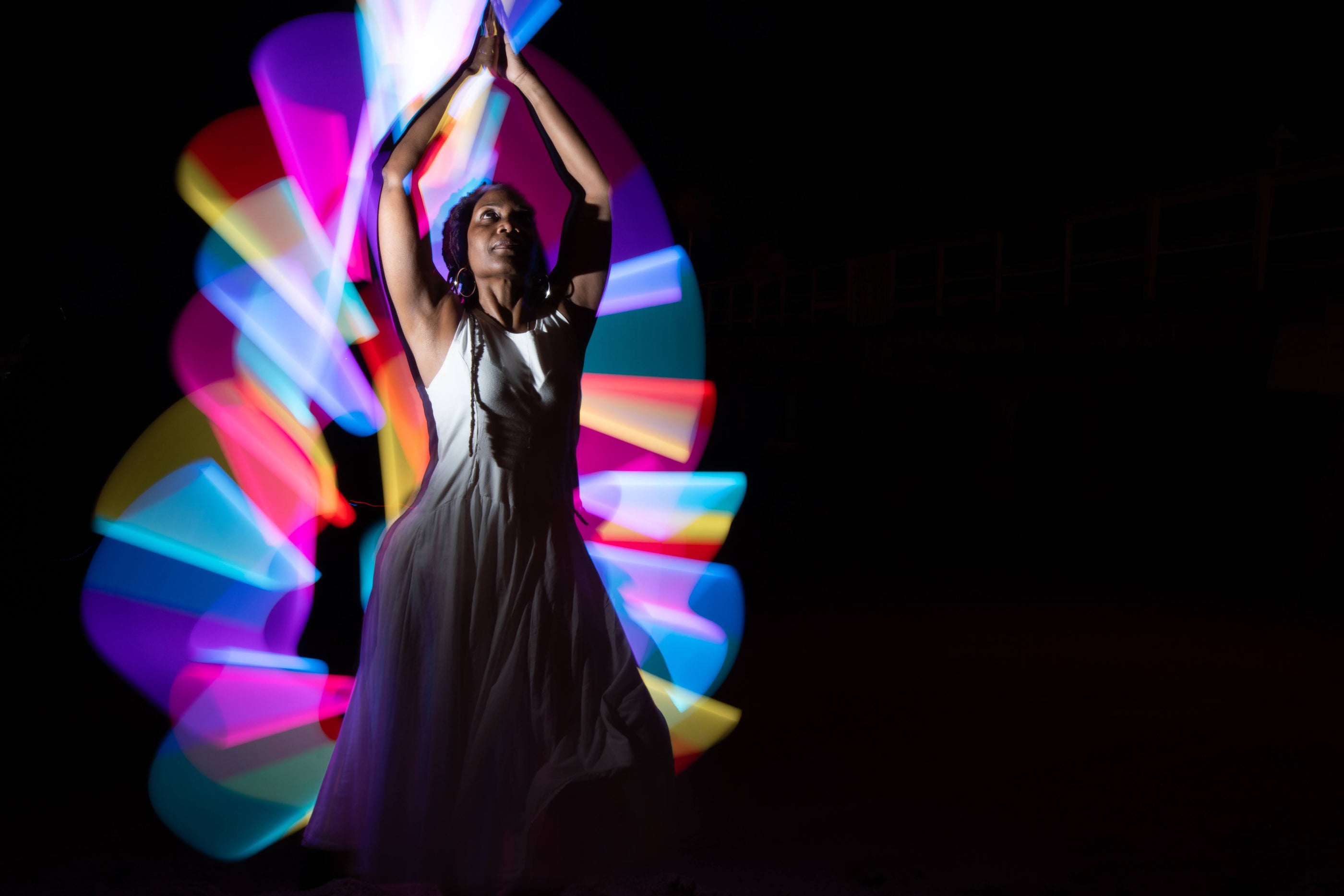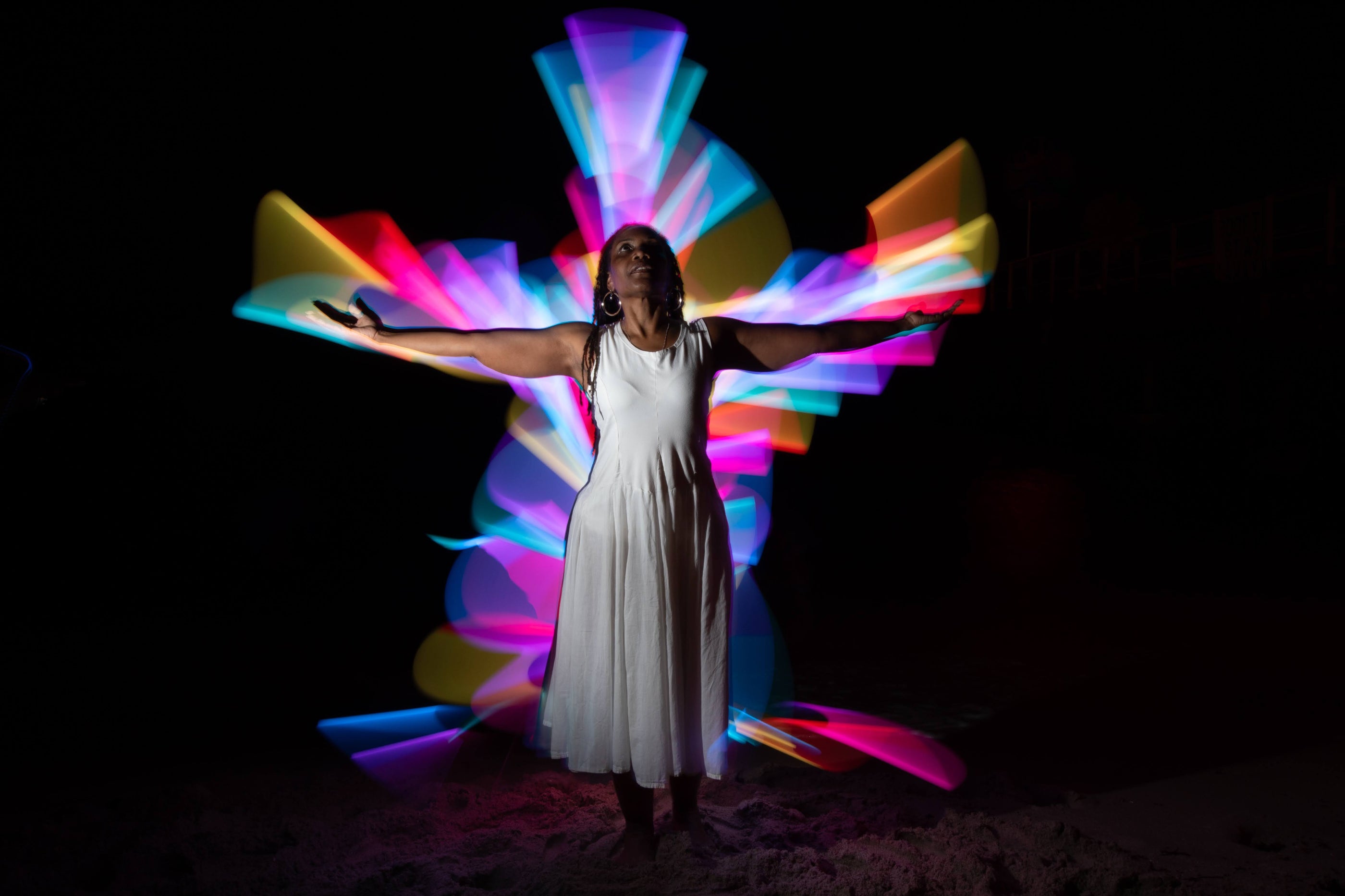 I added a cape of light to myself and controlled the camera with a remote and danced with light using my body as the brush.
